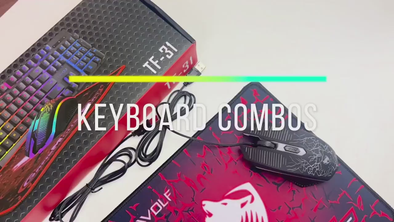 1pc T-WOLF Kit combo 3-en-1 pour jeux, clavier mécanique ergonomique avec rétroéclairage, souris optique et tapis de souris, durable et confortable